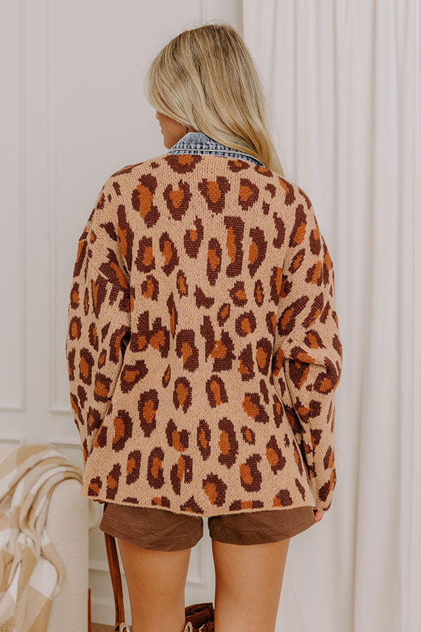 - This knit jacket is all about cute details! Leopard print and denim accents make it perfect for brunches, strolls, or casual hangouts. - Unlined knit material with an iced latte, brown, and camel leopard print - Denim accents - A collared neckline - A functional chest pocket - Long sleeves - A relaxed silhouette that ends in a straight hemline
