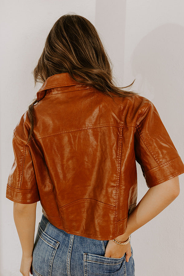 - This faux leather jacket is giving all the stylish vibes! The short sleeves and sleek collared neckline make it a must-have for staying on-trend during the seasonal transition.