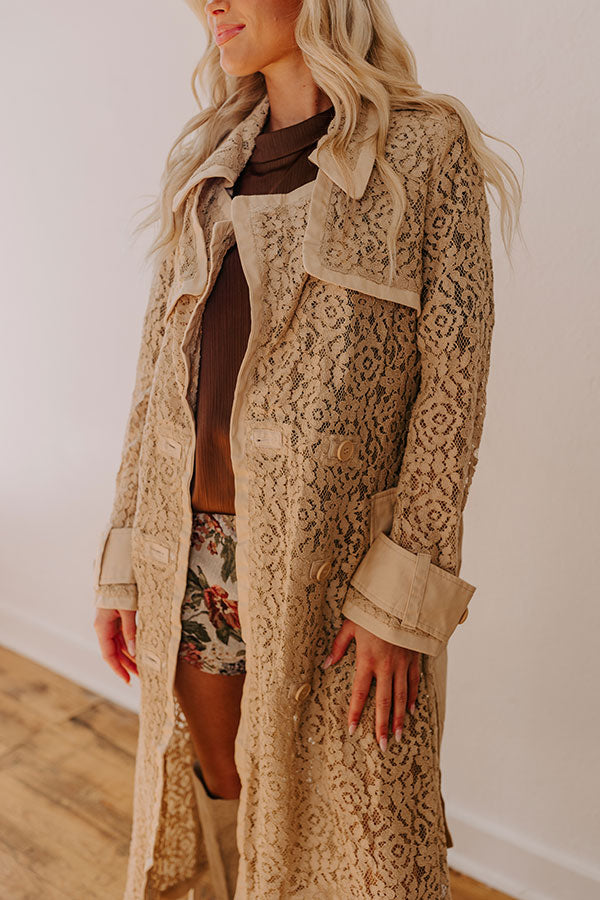 - Tie your look together with fabulous flair in this gorgeous lace trench coat! From coffee dates to social gatherings, this beautiful piece is perfect for a chic look.