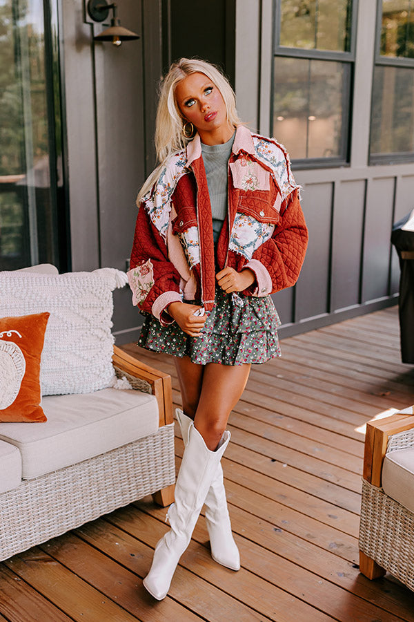 - Put a trendy twist on your outerwear collection with this charming jacket! Its color block design features different textures and floral accents making it the perfect piece for elevating everyday style. Be ready for compliments every time you cozy up in this darling jacket!