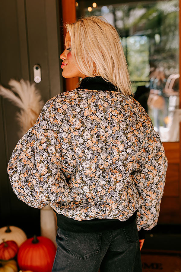 - Wrap yourself in floral sweetness with this darling bomber jacket! Its warm, quilted design makes it perfect for staying cozy on cooler days.