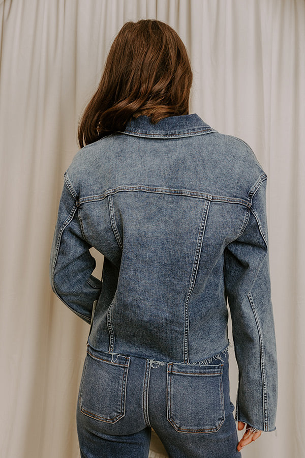 - Upgrade your casual wardrobe with this stylish denim jacket! Raw edges add a modern, edgy touch to any outfit.