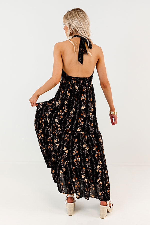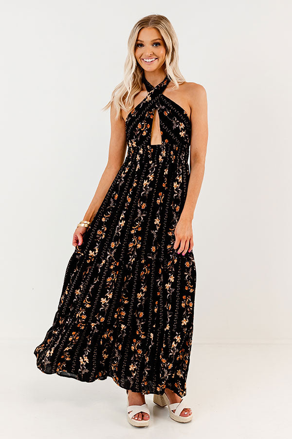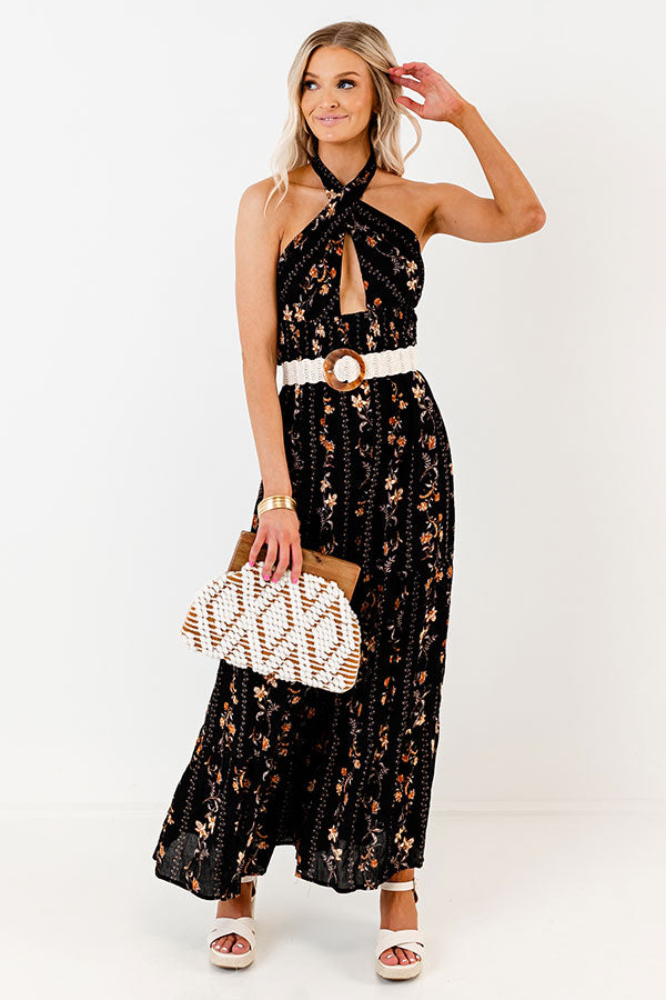 - Ruffled, flowy silhouette that ends in a straight floor length hemline