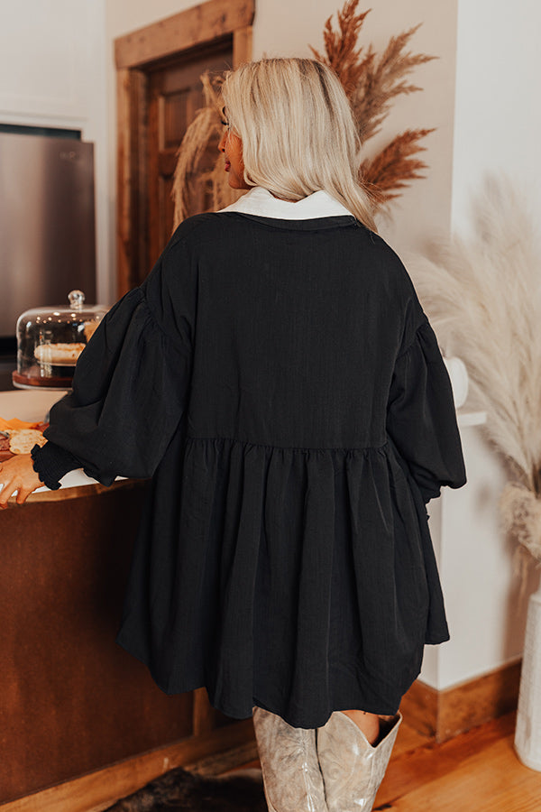 Cafe Patio Button Down Mini Dress in Black