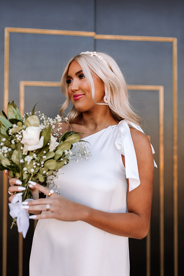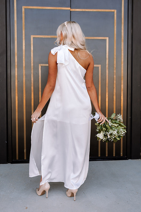Keep classy in this striking white maxi dress featuring sleek lightweight material, a diagonal neckline and upper back with a single tie closure shoulder strap, and a relaxed but flattering silhouette that cascades into a straight ankle-length hemline with an accent side slit!