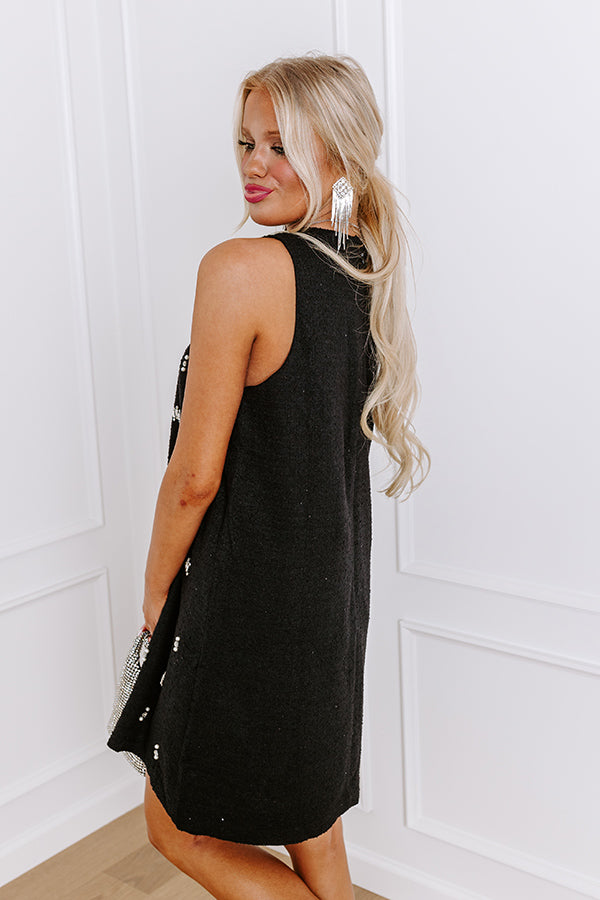 - Sparkle like you mean it with this fabulous mini dress! Shimmering rhinestones, sequins, and faux pearl accents give this piece a luxe vibe. It's your time to shine with this glamorous dress.