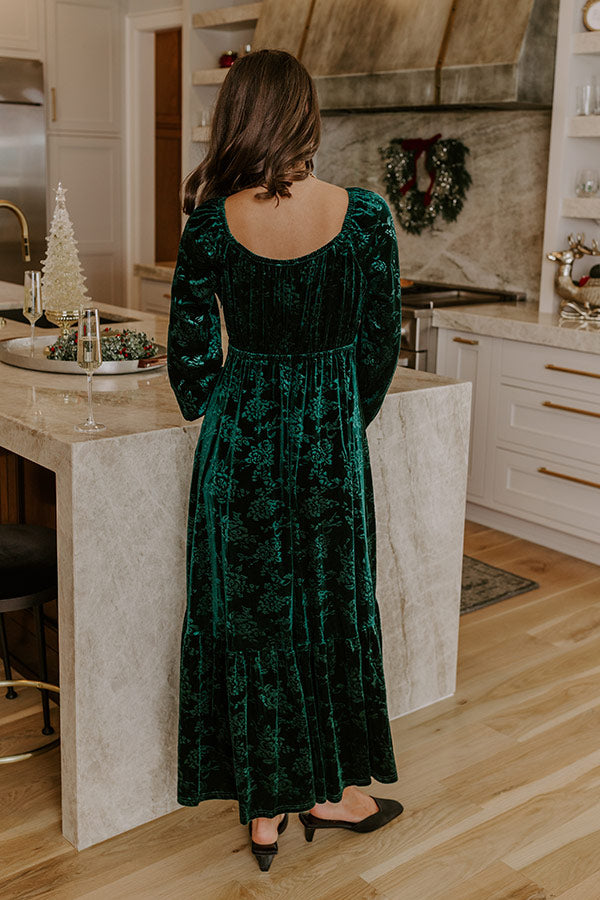 Champagne Toast Floral Velvet Maxi Dress in Emerald