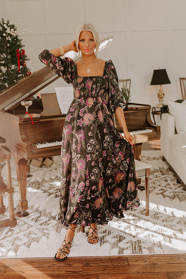 - Twirl through the night in this fabulous midi! Featuring a moody floral print and smocked details, it's the perfect choice for both date nights and casual brunch outings. Whether you're enjoying an evening under the stars or catching up with friends, this chic midi dress offers a fashionable look that stands out.
