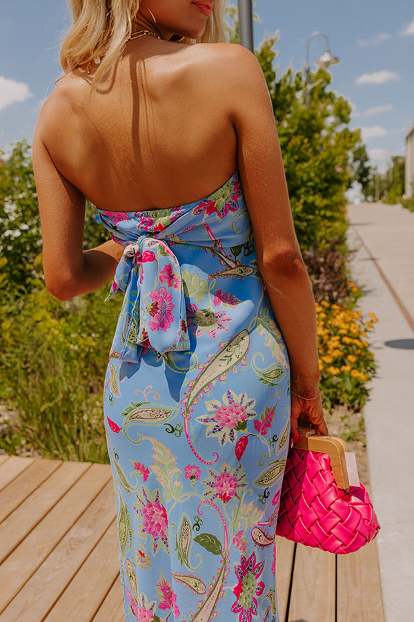 - Bring on the boho energy with this beautiful maxi! Delicate floral-paisley material and a chic strapless neckline make this dress a romantic option, perfect for a sweet date night. Be ready to capture hearts in this fabulous piece!