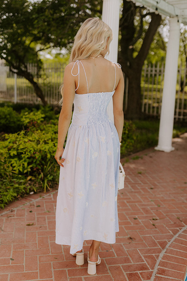 Seaside Blooms Embroidered Midi Dress