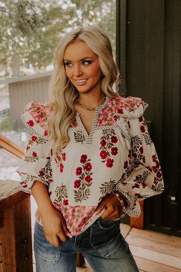 - Brighten your casual looks with this darling floral top! Its playful sleeves and charming color block design make it an irresistible wardrobe must-have.