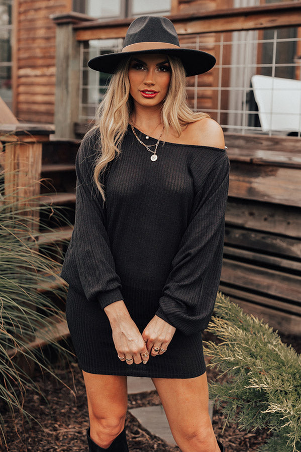 Stay cozy in this cute black dress featuring warm knit material, a rounded neckline, long oversized batwing sleeves, and a relaxed but flattering silhouette that ends in a straight mid-thigh length hemline!