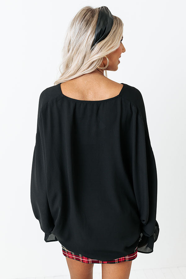 Don't hesitate to add our darling black 'Sweeter With Time' shift top to your cart with its lightweight material, v-cut neckline, long oversized bishop sleeves with flared cuffs, and relaxed silhouette that falls into a straight hemline!