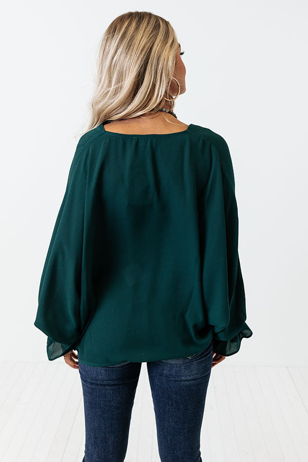 Don't hesitate to add our darling hunter green 'Sweeter With Time' shift top to your cart with its lightweight material, v-cut neckline, long oversized bishop sleeves with flared cuffs, and relaxed silhouette that falls into a straight hemline!