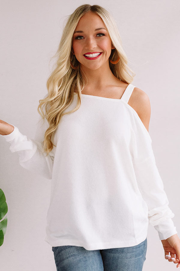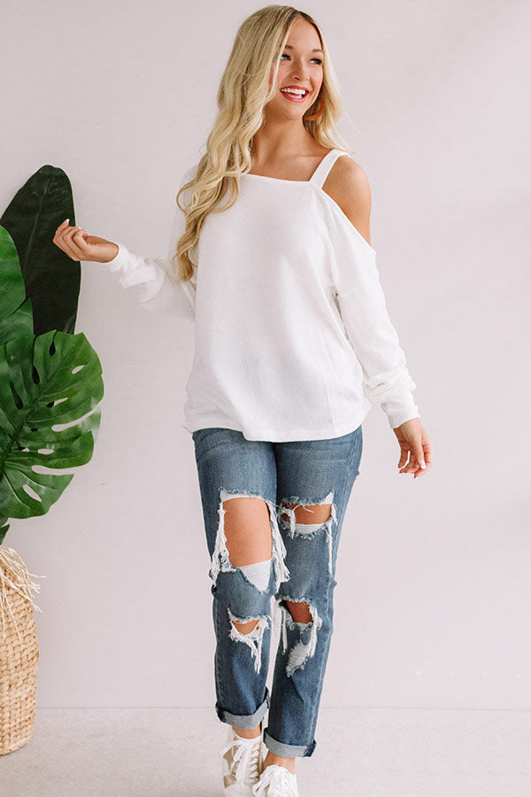 Amazing style is just "one call away" with this adorable white shift sweatshirt featuring soft lightweight material, a high rounded neckline, long loose sleeves with fitted cuffs and a cutout shoulder accent on the left side, and a relaxed silhouette that falls into a straight hemline! We have styled this casual cute piece with some distressed skinnies and trendy sneakers, but you can also wear it with some frayed shorts, "The Brighton Beach Espadrille in Taupe," our "Plans In Paris Wool Hat in Taupe," and our "Bryant Park Views Quilted Crossbody in Iced Latte!"
