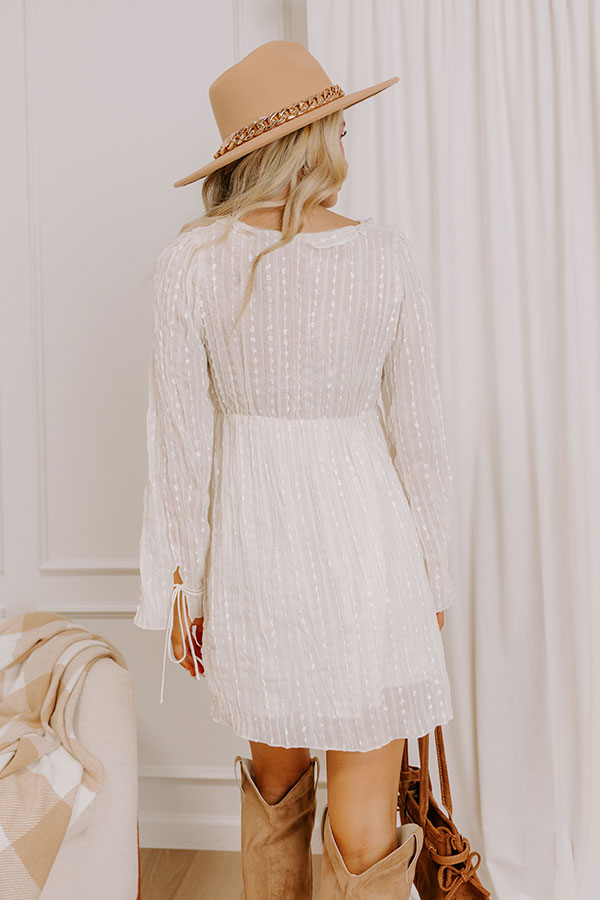 - Bring on the stylish vibes with this embroidered mini dress! Designed with swiss dot stripes and sweet tie accents, it's a charming piece for your everyday wardrobe.