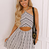 - Lightweight material with a pattern of abstract floral stripes and a built in skirt lining