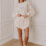 - Shorts with a skirt overlay featuring lace cutout bows on the front