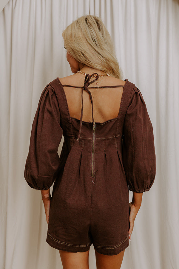 - Stylish denim days are calling with this darling romper! Its flirty open back and pretty pleated details make it an instant favorite.