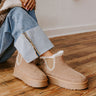The Phoebe Faux Suede Platform Bootie in Warm Taupe