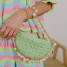 Introducing the Melie Bianco's Isla top handle bag, perfect addition to your summer accessories. Made with a hand woven straw and detailed with pearl and seashells along its silhouette giving Isla an elegant look.