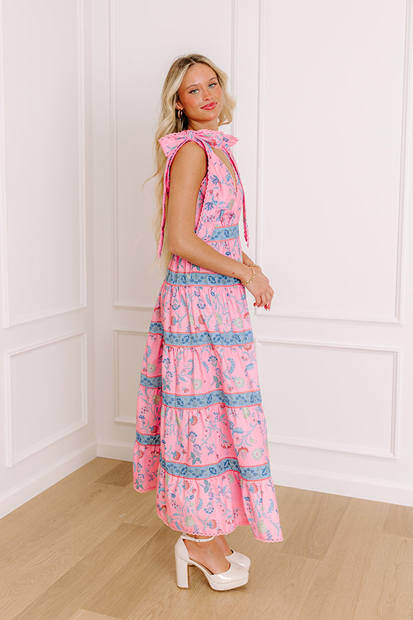 - This floral maxi dress is your new go-to for a fun, flirty look! The charming tied straps add a cute touch, while the flirty neckline brings all the playful vibes. Perfect for any sunny occasion, this dress makes looking adorable feel effortless!