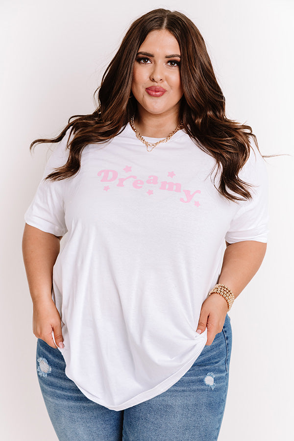 Plus Size - Cozy up in style with this dreamy white shift tee featuring soft lightweight material with pink stars and lettering on the front, a high rounded neckline, short loose sleeves, and a relaxed silhouette that falls into a rounded hemline!