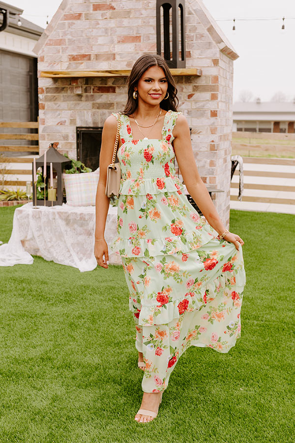 - A flowy, tiered silhouette that ends in a straight floor length hemline