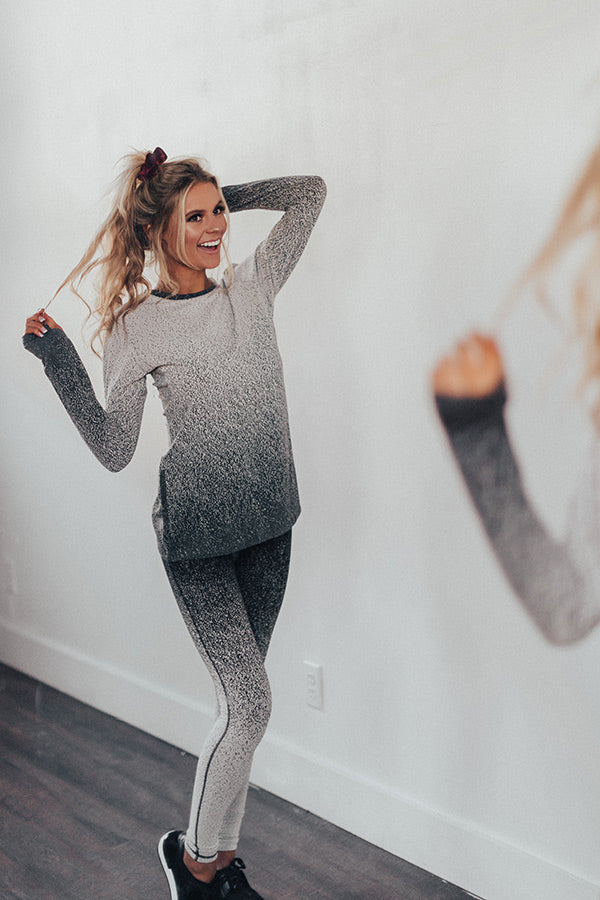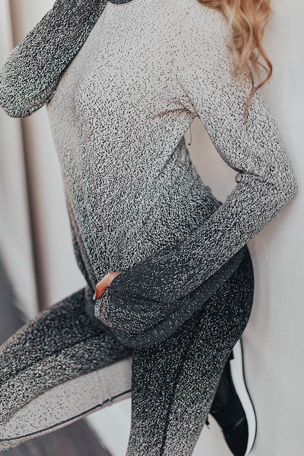 Show up in style with our "Ready, Steady, Chic Shift Sweatshirt" featuring soft lightweight material, a high rounded neckline, long loose sleeves, a speckled black to white ombre pattern, low accent side pockets, and a relaxed silhouette that falls into a straight hemline! This adorable athleisure piece styles perfectly with our "Ready, Steady, Chic High Waist Active Legging" and trendy sneakers for the ultimate two piece workout set!
