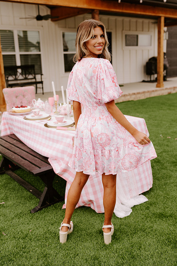 - A figure flattering silhouette that ends in a ruffled mid-thigh length hemline