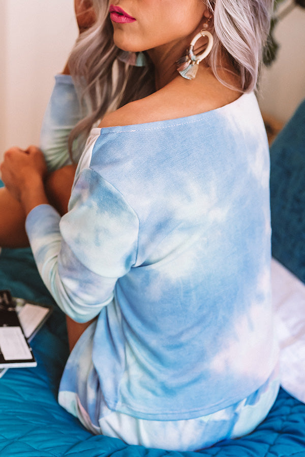 Relax in the most stylish way with our adorable 'Sorbet Kisses' top featuring soft lightweight material patterned with blue and pink hued tie dye, a wide rounded neckline that can be worn off one shoulder, 3/4-length form fitting PIKO sleeves, and a relaxed silhouette that falls into a straight cropped hemline!