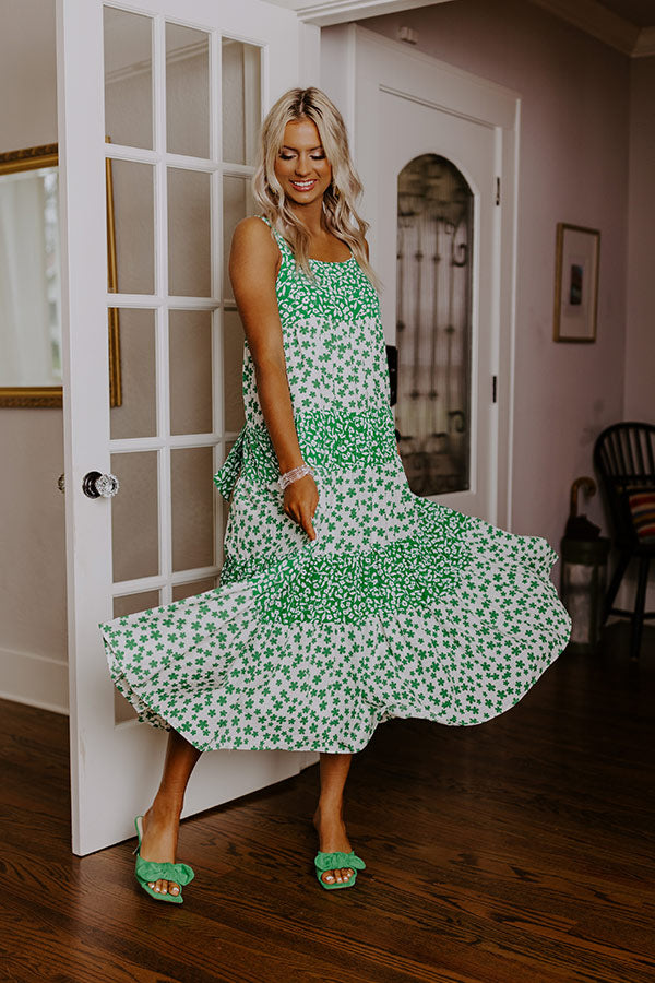 Add a fun refresh to your wardrobe with this stunning midi dress featuring lightweight material, green and white color block panels patterned with a green and white floral print, a straight neckline with 1-inch shoulder straps, a tie closure back, and a relaxed skirt silhouette that falls into a straight mid-calf length hemline! on products