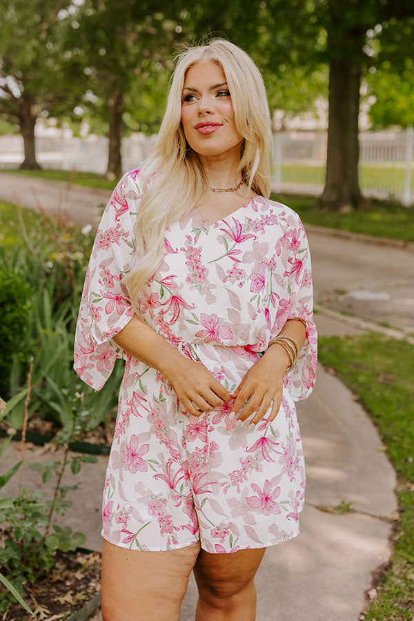- A flowy romper silhouette that ends in straight mid-thigh length hemlines