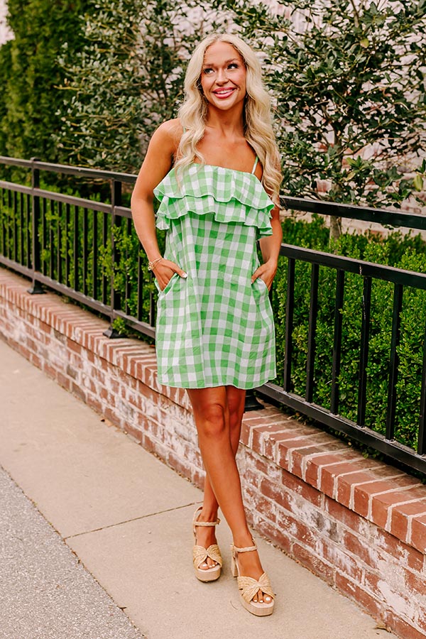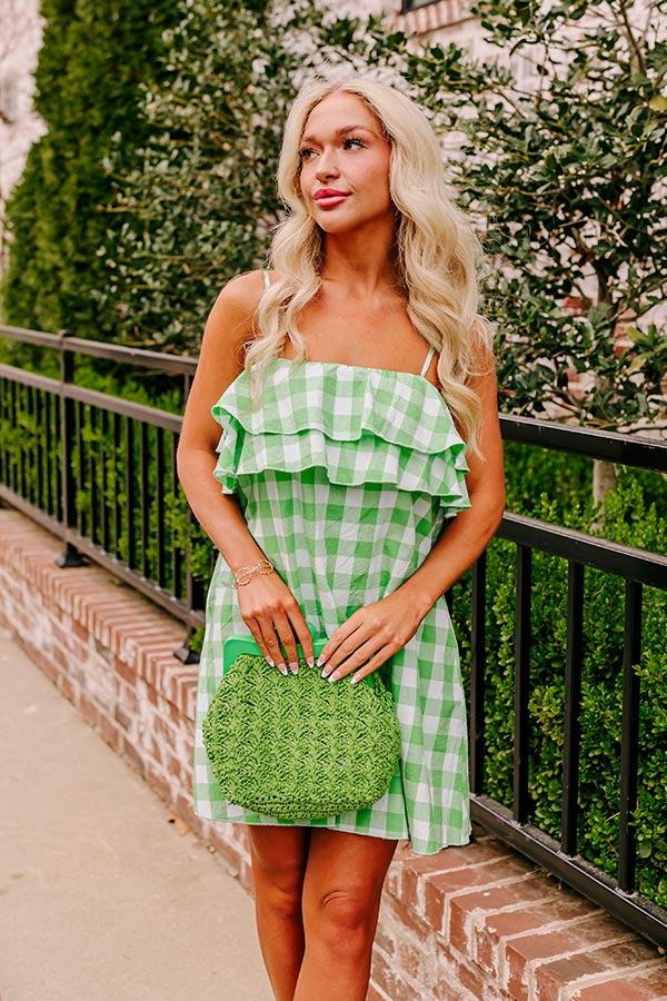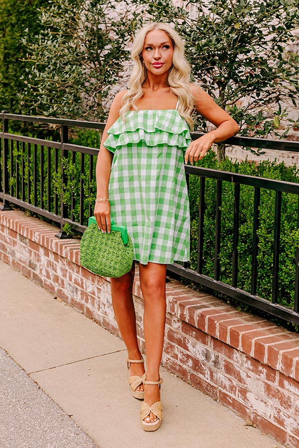 Alfresco Allure Gingham Mini Dress in Lime Image - 1