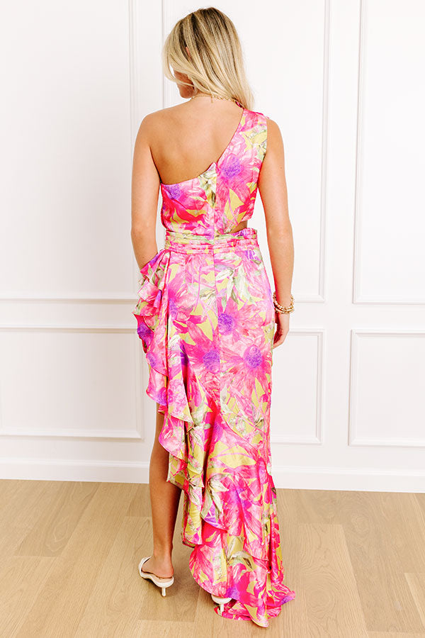 Island Soiree Floral Satin Maxi Dress