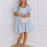Cheerful Charm Jacquard Mini Dress in Airy Blue
