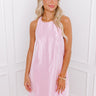 - Elevate your wardrobe with this stunning mini dress, a must-have for any glam girl. Featuring a luxe satin finish and a chic sleeveless design, this adorable dress promises to make you the center of attention. - Fully lined material with a satin finish - A round neckline - Back zip closure - A sleeveless cut - Faux pocket cut accents on the sides - A relaxed silhouette that ends in a straight hemline