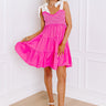 - Step into sweetness with this darling mini dress! Featuring satin-finished ribbon straps that tie into charming bow accents, this dress is pure delight. The smocked bodice hugs your curves just right, creating a flattering silhouette that's both playful and elegant. Perfect for a sunny day out or a whimsical evening event, this dress is your go-to for a touch of cuteness and style.