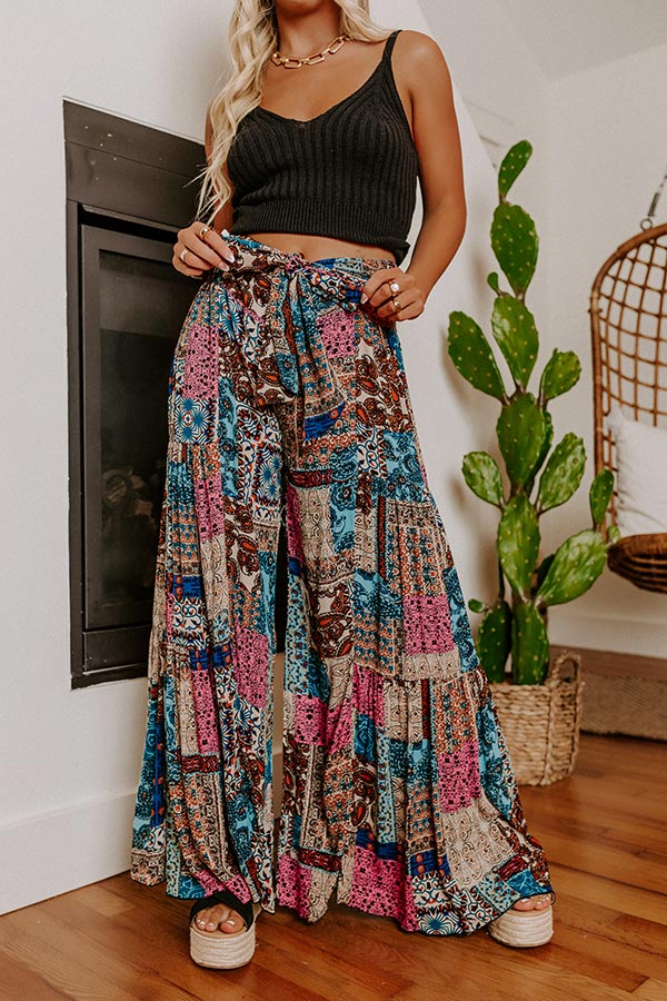 You will look like a boho queen in our uniquely eye-catching 'Near To Paradise' pants featuring lightweight material patterned with an intricate and colorful patchwork print, a high waistline with a ribbon tie closure, and an ultra breezy silhouette that falls into straight ankle-length oversized hemlines!