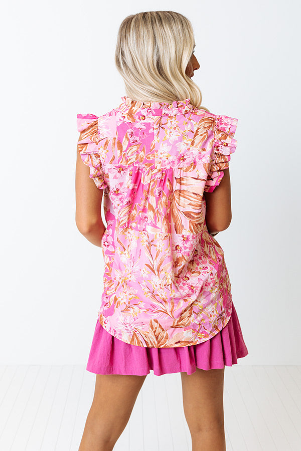 A luxe necessity, our upscale 'Well Loved' shift top features sleek lightweight material patterned with a light brown and natural hued floral print, a button up front, ruffle trim detailing around the cap sleeves and neckline, and a relaxed silhouette that ends in a straight hemline!
