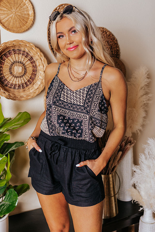You will look like a total girl boss in this chic 'CEO Style Shift Tank' featuring lightweight flowy material patterned with unique black and natural hued baroque prints, a v-cut neckline with adjustable spaghetti straps, and a relaxed silhouette that falls into a straight hemline!