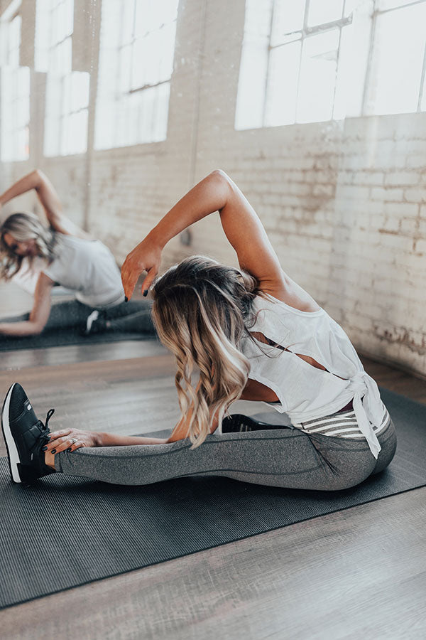 Keep your style effortless in our versatile white 'Crunches, Then Cocktails' tank featuring lightweight breezy material, a high rounded neckline, wide 3-inch sleeveless shoulder straps, a peek-a-boo cutout back with a knotted hem closure, and a relaxed silhouette that falls into a straight front hemline!