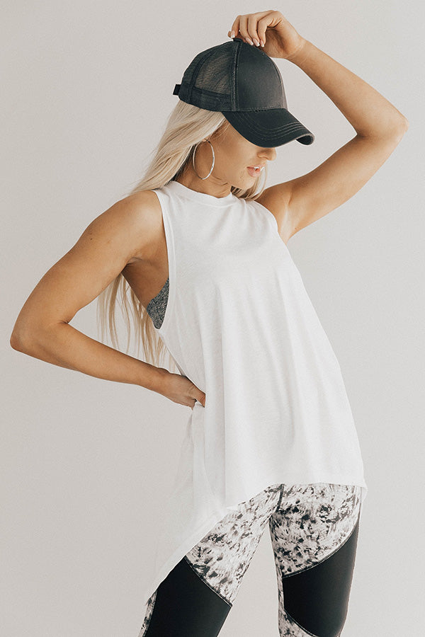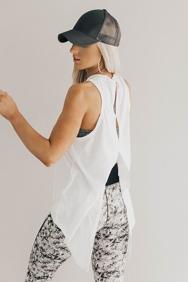 Crunches, Then Cocktails Peek-A-Boo Tank in White