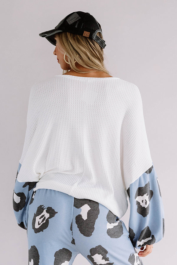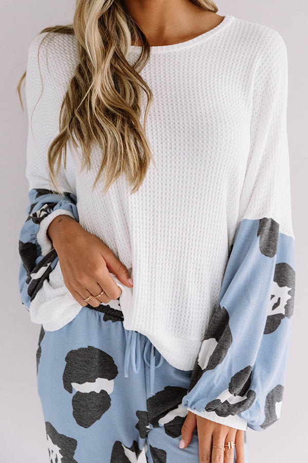 Highline Chic Waffle Knit Leopard Top in Sky Blue