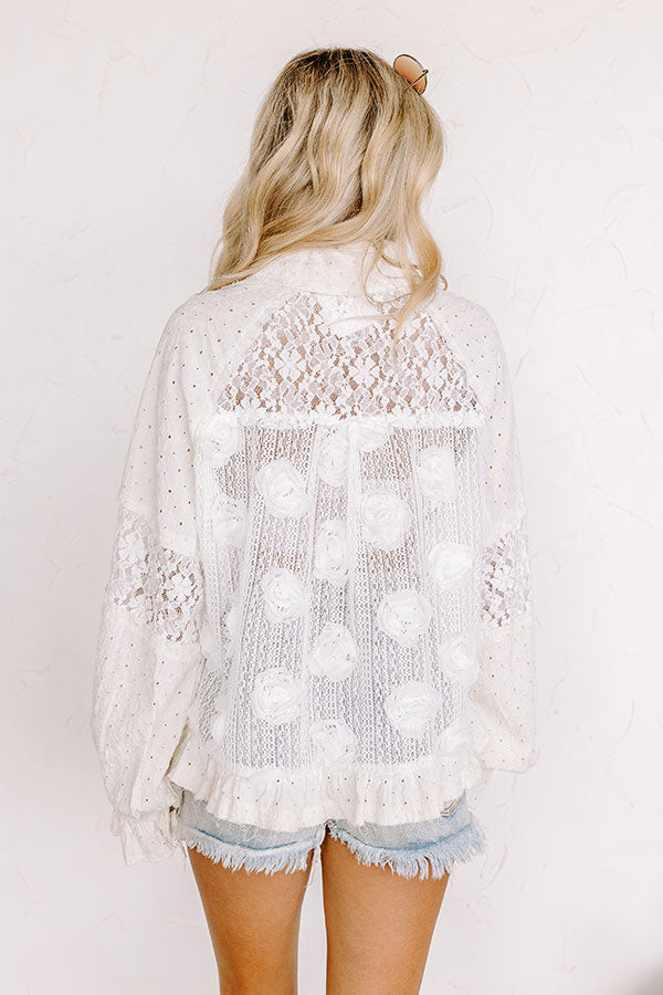 Tea Garden Embellished Knit Button Up in Cream