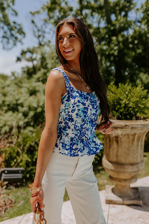 Bloom into style in our beautiful 'Dear Love' features lightweight material patterned with a royal blue and light turquoise hued floral print, a scooped neckline, 1-inch sleeveless shoulder straps, a tie closure mid-back, and a flattering silhouette that ends in a short peplum hemline!