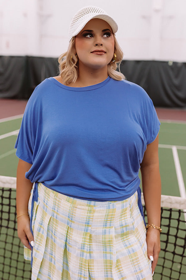Plus Size - You are sure to have a happy mindset when you complete your look with this blue casual cute tee featuring soft lightweight material with cute ruched side detailing, a rounded neckline, short loose sleeves, and a slouched silhouette that falls into a straight hemline!