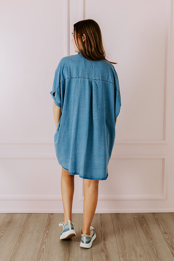 Call Me Cutie Chambray Tunic Dress in Medium Wash