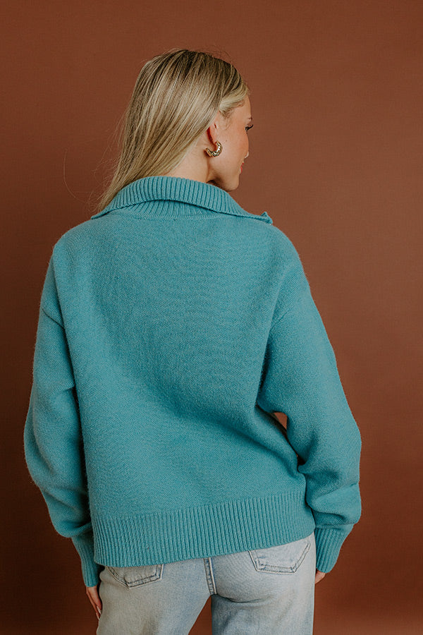 Brisk Stroll Quarter Zip Knit Sweater in Turquoise