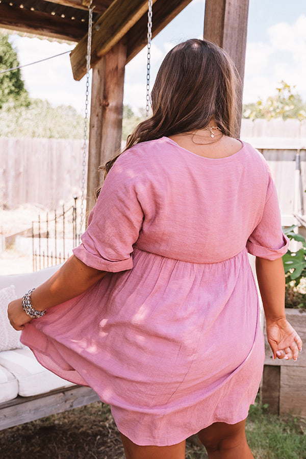 Plus Size - Meetup with your friends in style with this adorable blush shift dress featuring lightweight breezy material, a v-cut neckline, short loose sleeves with rolled cuffs, and a relaxed silhouette that falls into a rounded mid-thigh length hemline! We have layered this cutie under a denim jacket with some snake print booties, but you can also wear it with "The Alba Wedge in Ivory," our "Greenwich Village Faux Leather Clutch in Ivory," and our matching "See You Soon Wool Hat!" Measurements